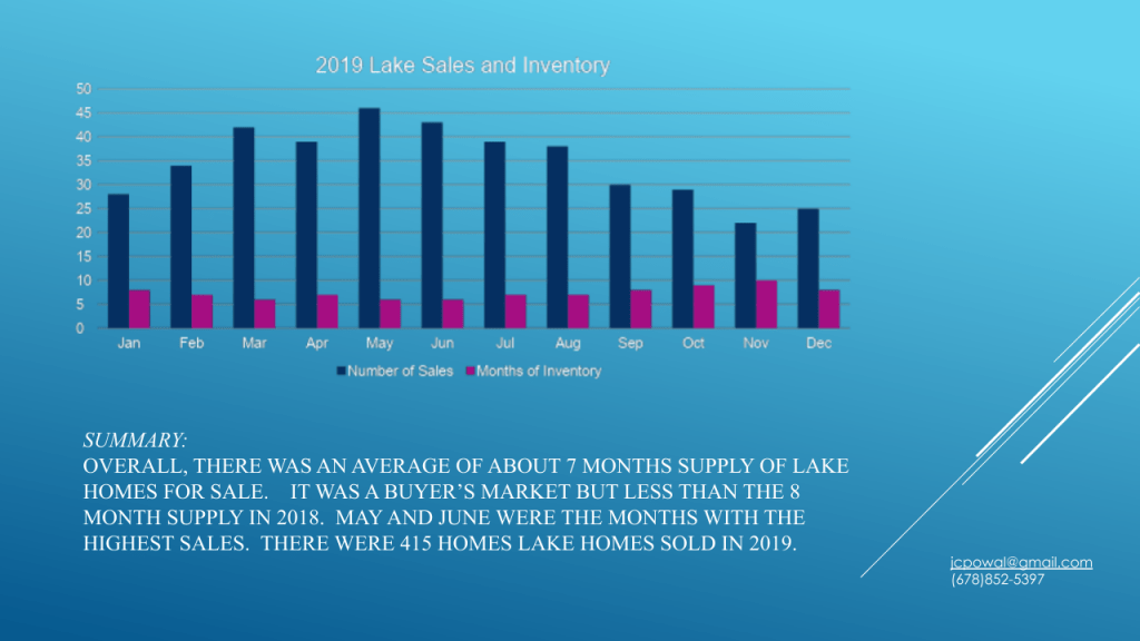 Hi everyone! If you’re even considering purchasing or selling a lake home this year, I’ve compiled data from 2017, 2018, and 2019 which will help inform your decision and make the best choice for you and your family. Lake house real estate can be a tricky business, so it’s important to have a knowledgeable realtor to help you through the process and find the right time to buy or sell!